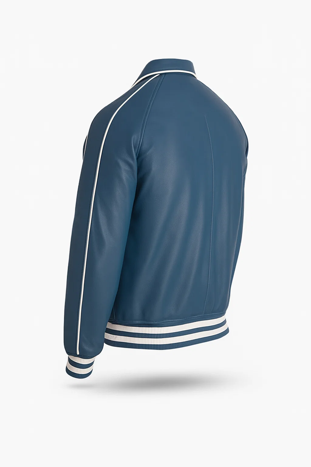 Shirt Style Leather Varsity Jacket – Blue