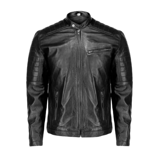 Mens Cafe Racer Black Leather Jacket