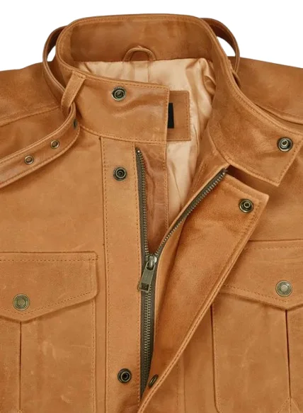 Rafael Nadal Stand Up Style Tan Brown Leather Jacket