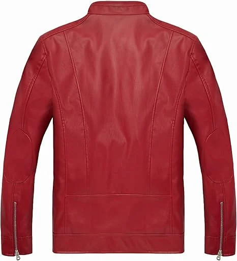 WULFUL Stand Collar Motorcyle Lightweight Faux Leather Red Jacket